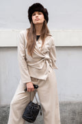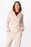 Giacca  in flanella unisce eleganza e comfort grazie alla chiusura con bottone interno e al dettaglio a nodo, che aggiunge un tocco distintivo al tuo look. Completa il tuo outfit con il pantalone " camilla ".