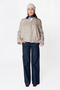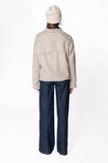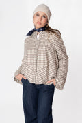 Giacca in lana con collo alla coreana e motivo pied de poule.